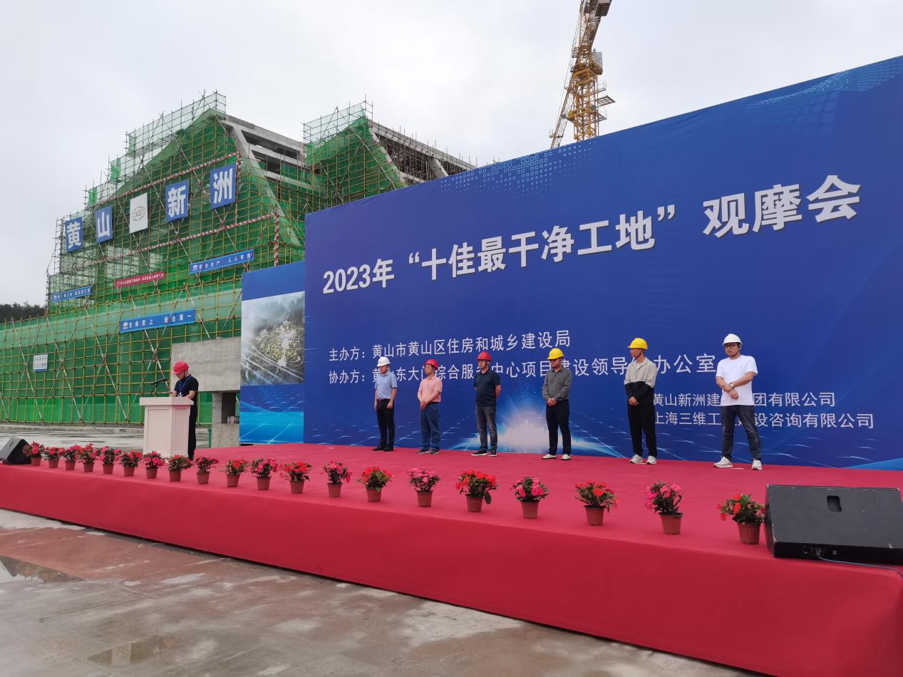 為加快打造“全國最干凈城市”,助推全國文明典范城市創(chuàng)建,加強建筑工地安全管理工作,全面提升建筑工地標(biāo)準(zhǔn)化施工管理水平。2023年5月31日上午九點,由黃山區(qū)住建局組織開展的2023年黃山區(qū)“最干凈工地”觀摩會走進(jìn)黃山新洲建設(shè)集團(tuán)承建的黃山東大門綜合服務(wù)中心項目。區(qū)住建局、黃山風(fēng)景區(qū)管委會、集團(tuán)公司總經(jīng)理、全區(qū)建筑施工、監(jiān)理企業(yè),建筑業(yè)協(xié)會以及在建項目等相關(guān)負(fù)責(zé)人近百人參加觀摩。