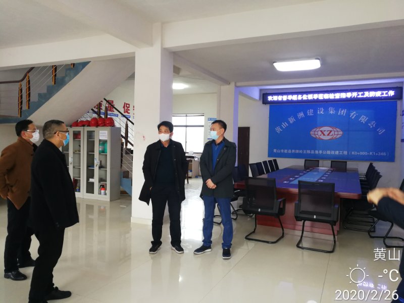 2020年2月26日,由省交通運(yùn)輸廳辦公室主任張宗斌、省交通運(yùn)輸廳政法處主任科員豐建雄等組成的防疫及開復(fù)工督查督導(dǎo)組對(duì)我公司承建的歙縣界牌嶺至黟縣漁亭改建工程(K0+000-K1+346)進(jìn)行了檢查、督導(dǎo)工作,市海事局副局長(zhǎng)胡要武、副縣長(zhǎng)江成永,縣交運(yùn)局局長(zhǎng)吳會(huì)樂、副局長(zhǎng)蔣紅雨等相關(guān)領(lǐng)導(dǎo)隨督導(dǎo)組陪同檢查。對(duì)項(xiàng)目的開工情況進(jìn)行了了解,對(duì)疫情防控措施及防疫物資進(jìn)行了檢查。